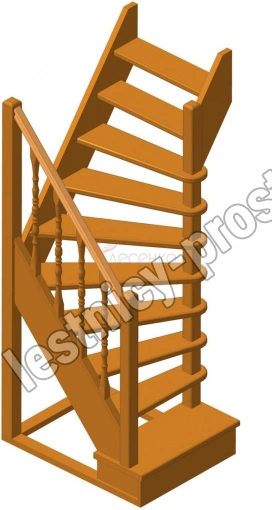 Деревянная межэтажная лестница ЛЕС-91 2250-2475 проем 1090-780, Бук
