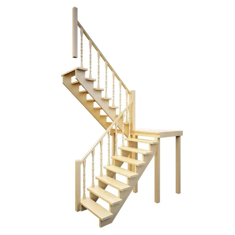 Базовый комплект включает в себя деревянные элементы лестницы, подступенки и ограждения без какого-либо покрытия. Лестница поставляется в разобранном виде, упакованная в ящик. Монтаж производится силами двух человек, в соответствии с указаниями, приведёнными в паспорте лестницы.