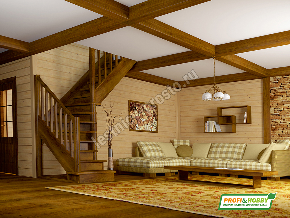 Ступени и поручень лестницы изготовлены из бука, остальные элементы из сосны.