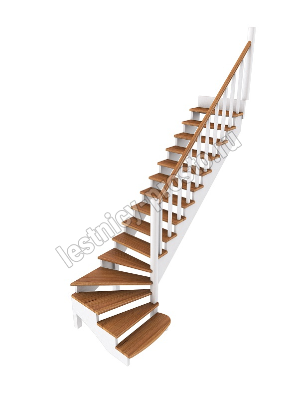 Ступени и поручень лестницы изготовлены из дуба, остальные элементы из сосны. Возможно изготовление модели полностью из дуба. Базовый комплект включает в себя деревянные элементы лестницы и ограждения без какого-либо покрытия. Вы можете заказать у нас покраску лестницы в цвета, отвечающие особенностям вашего помещения.