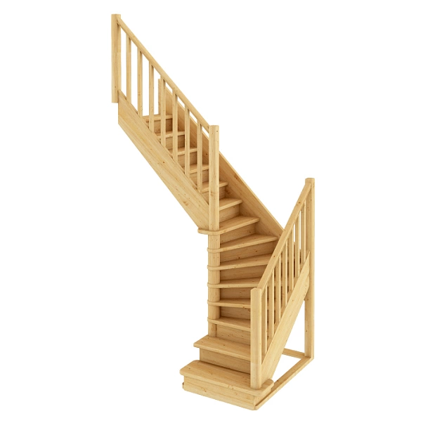 Базовый комплект включает в себя деревянные элементы лестницы и ограждения без какого-либо покрытия.