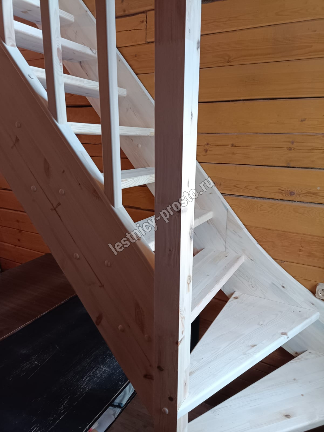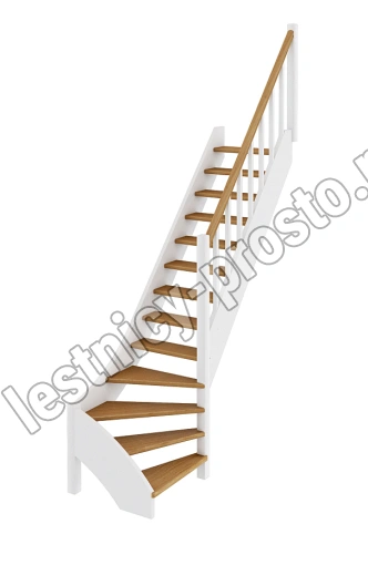 Базовый комплект включает в себя деревянные элементы лестницы и ограждения без какого-либо покрытия. Лестница под покраску изготовлена из сосны с небольшими участками синевы, которая мало влияет на механические свойства материала и практически незаметна при покраске лестницы в тёмные цвета, однако позволяет снизить стоимость готовой лестницы, по эксплуатационным свойствам ничем не отличающейся от более дорогого аналога.