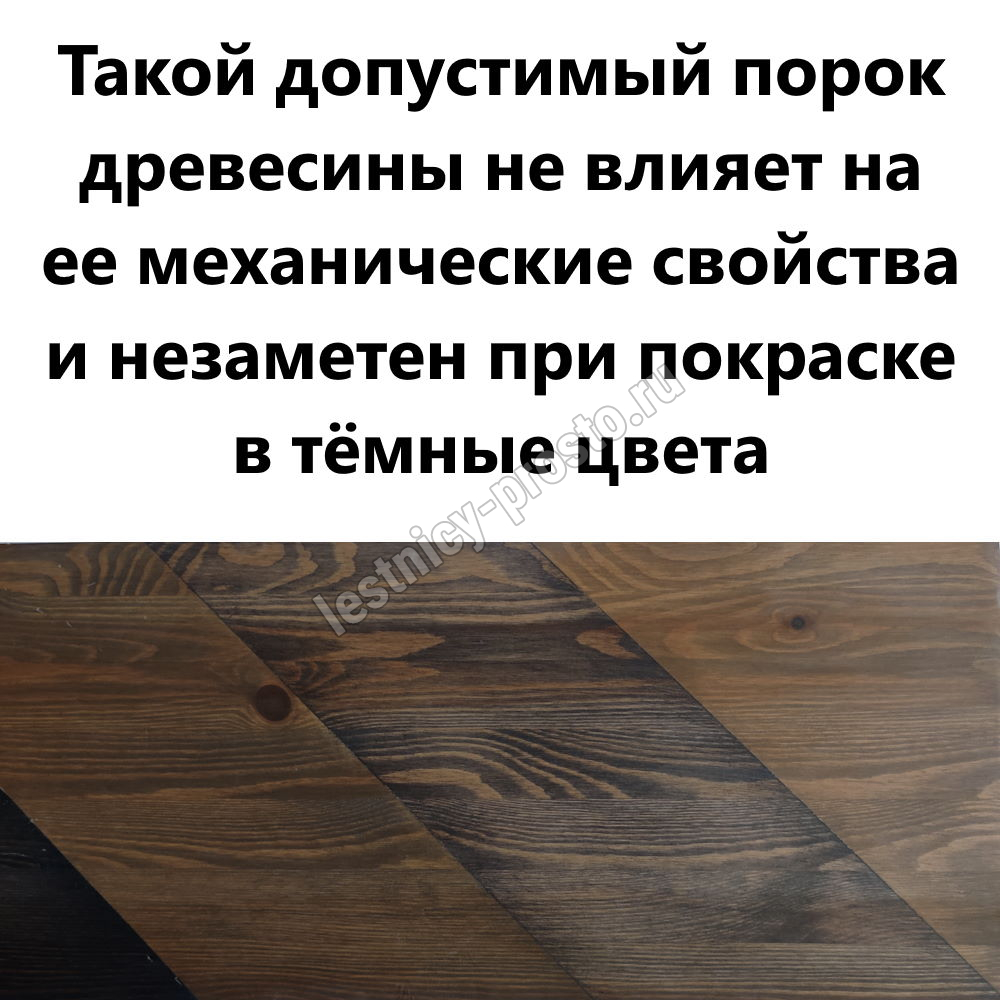 Обратите внимание! Данный вариант изготовлен из сосны эконом-класса, что выражается в неоднородности цвета и заметных темных областях на древесине - эта особенность никак не отражается на прочности лестницы, но может быть заметна при покрытии прозрачными средствами или покраске в светлые цвета.