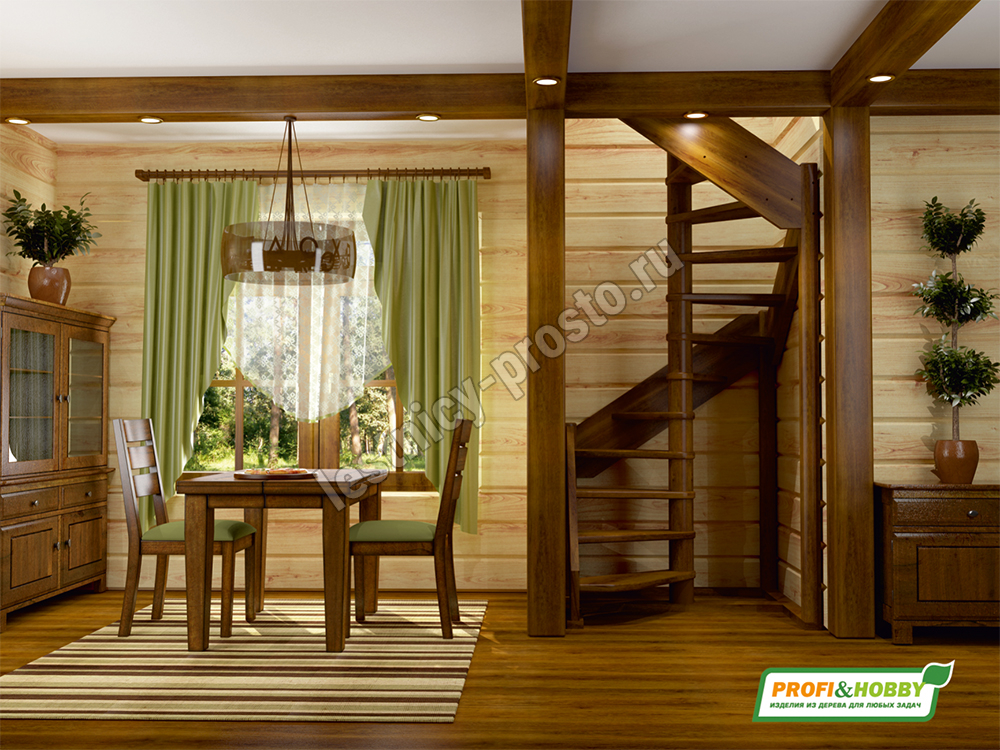 Базовый комплект включает в себя деревянные элементы лестницы и ограждения без какого-либо покрытия.
