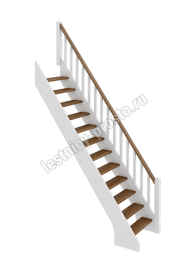 В производстве лестницы ЛС-10м под покраску используется сосна с небольшими изменениями цвета, что практически не влияет на ее механические свойства и почти незаметно при покраске в темные цвета. Базовый комплект включает в себя деревянные элементы лестницы и ограждения без какого-либо покрытия.