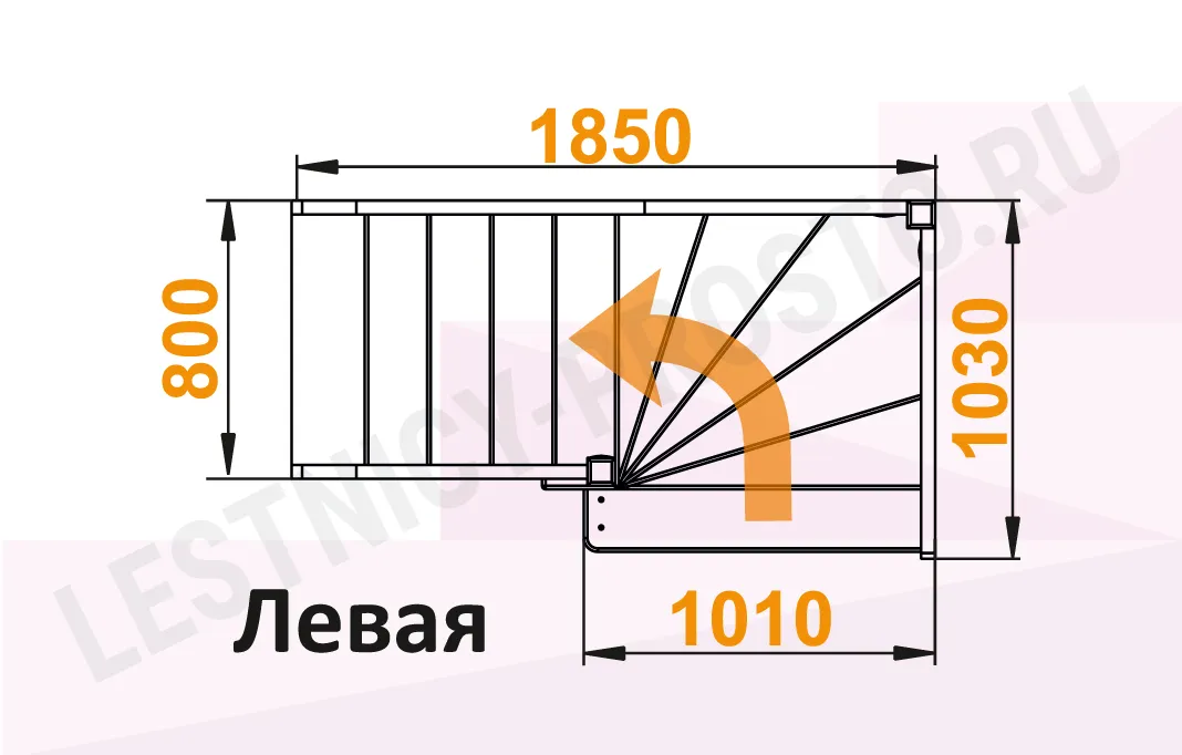 Схема лестницы ЛС-92М с поворотом налево