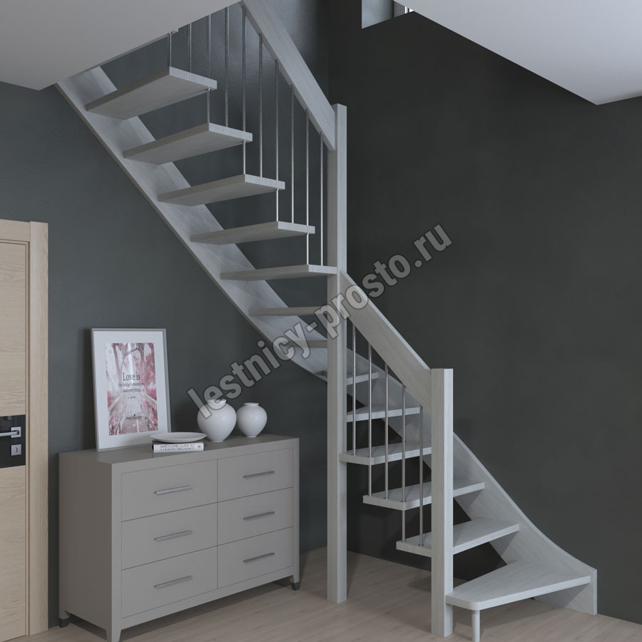 Надёжная современная лестница выполнена по немецкой технологии. Стоимость указана для лестницы с ограждением (с одной стороны); Поставляется в разобранном виде, в комплекте необходимый крепёж; Лестницу можно собрать самостоятельно; Так же, вы можете заказать услугу монтажа нашими специалистами; 4 вида породы дерева для изготовления лестницы: сосна, бук, ясень, дуб; возможна комбинированная лестница: из сосны (ступени бук, ясень, дуб); Деревянные элементы без какого-либо покрытия, отшлифованы, готовы к покраске. За дополнительную плату, вы можете изменить любые параметры, а именно: увеличить глубину ступени; увеличить ширину марша до 900 мм. и выше; заказать подступенки к лестнице; заказать отделку перекрытия (между 1-м и 2-м этажами); изготовить дополнительный промежуточный марш; заказать ограждение 2-го этажа; покраска в любой цвет или несколько цветов или покрытие защитными средствами; дополнение балясины из нержавеющей стали деревянными элементами; покраска балясин из нержавеющей стали порошковой краской в цвет RAL.