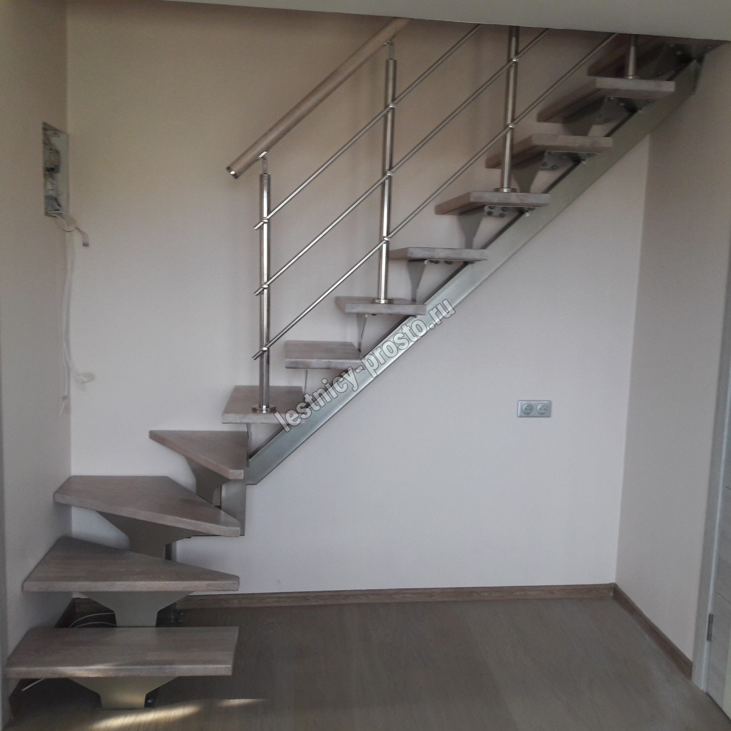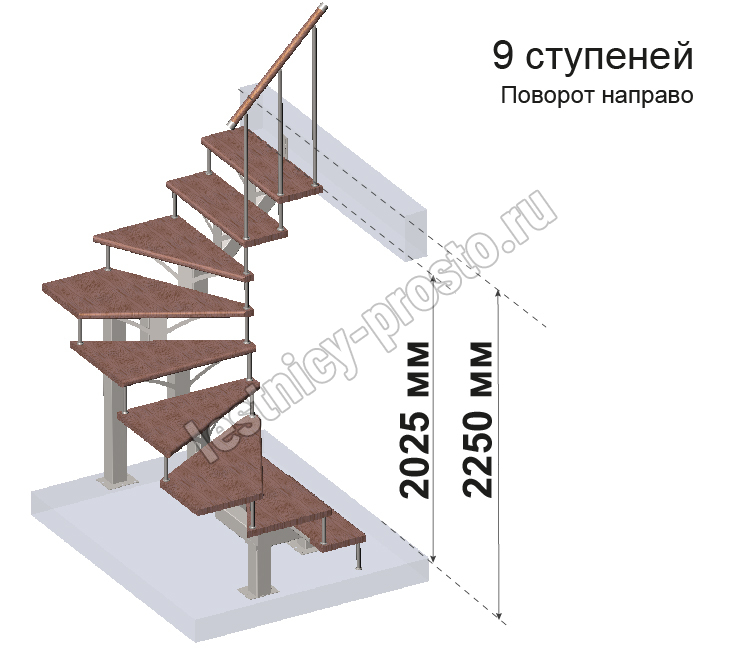 Комплект ограждений для П-образной лестницы PROSTO MONO из 9 ступеней.
