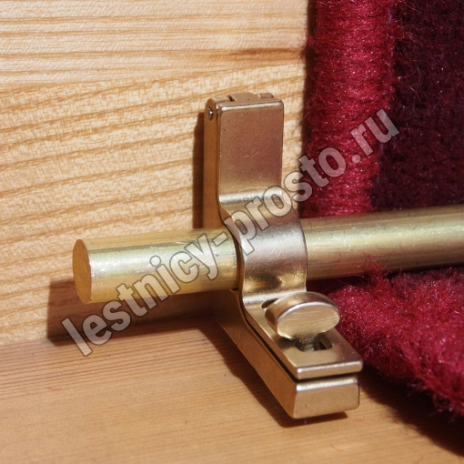 Ковродержатель комплектуется двумя держателями из латуни цвета золото, а также цельным прутком из латуни длиной от 131 до 170 см. Конструкция является сборно-разборной не требующей демонтажа креплений, что делает ее долговечной и очень удобной для чистки ковров и ковровых покрытий.