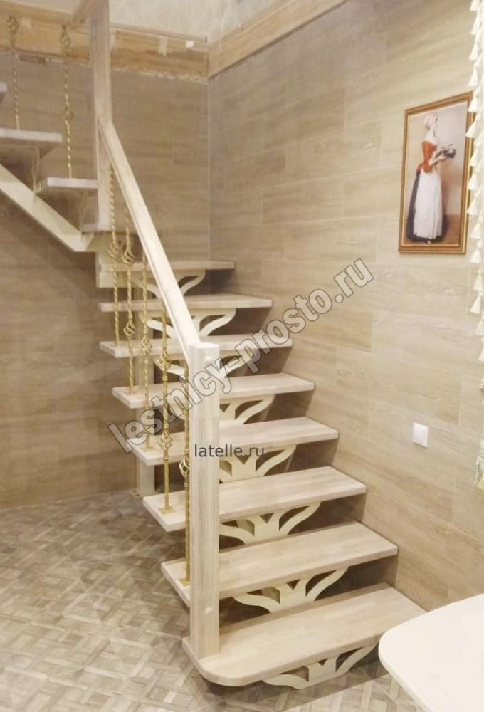 Лестница PROSTO MONO Г-образная h247.5 см, ступени бук