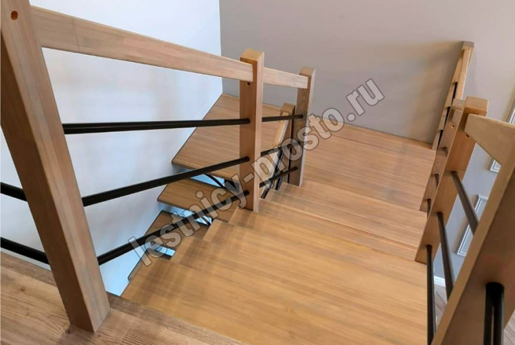 Ступени лестницы изготовлены из дерева категории А/В паркетной склейки без какого-либо покрытия. Вы можете заказать у нас предварительную профессиональную покраску деревянных элементов материалами БИОФА в широкий спектр цветов (стоимость зависит от количества ступеней).