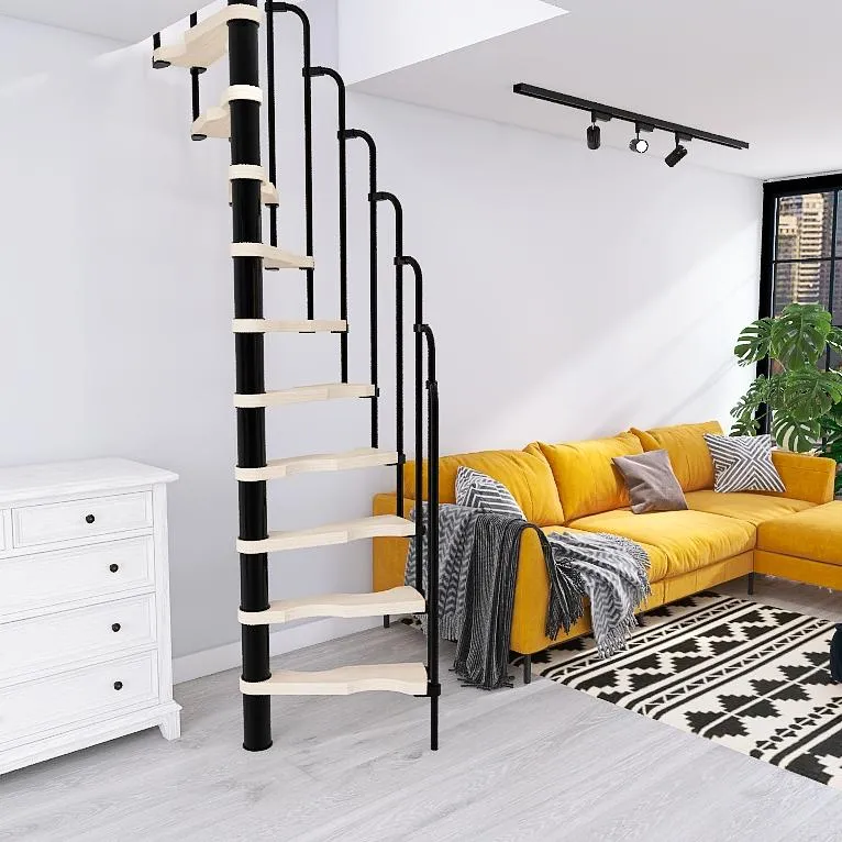 Лестница на стальном модульном каркасе. Высота лестницы регулируется при сборке засчет регулировки высоты шага. Ступени покрыты защитным лаком. Ограждение из стали с пластиковым поручнем. В комплект входят перила с вертикальными стойками и горизонтальными перегородками. Изделие поставляется с шурупами (кроме потолочных и напольных анкеров), инструкциями по монтажу и эксплуатации и гарантией. Внимание! Для этой лестницы необходимо крепление к стене.