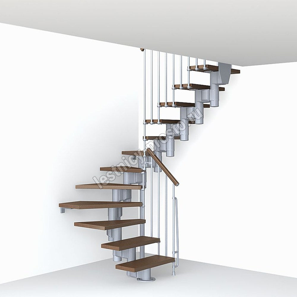 При монтаже этой лестницы, возможно регулировать высоту и глубину шага, таким образом можно получить лестницу под высоты этажа в диапазоне 2250 - 3030 мм, кроме того, установив дополнительный комплект увеличения высоты, можно поднять высоту лестницы до 3730 мм. Ширина проступи регулируется при монтаже в пределах 180 - 220 мм. Каркас и стойки ограждения выполнены из пластифицированного металла. Уникальный модульный каркас позволяет собрать лестницу необходимой формы.