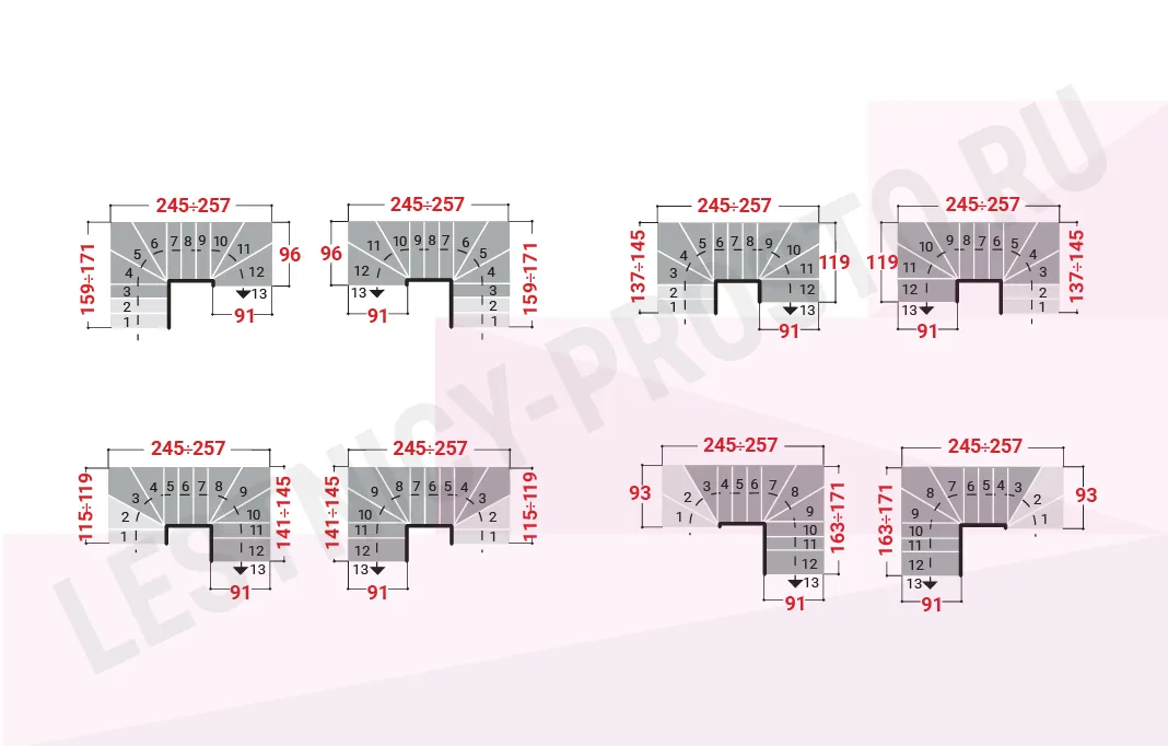 Высота лестницы 2250 - 3030 мм