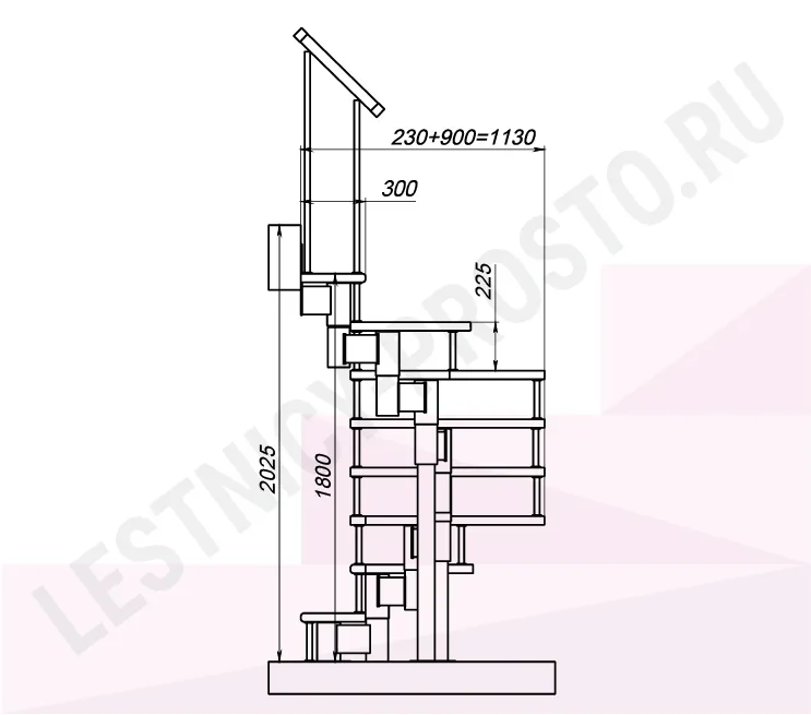 Высота лестницы 1800 - 2025 (8 ступеней) мм