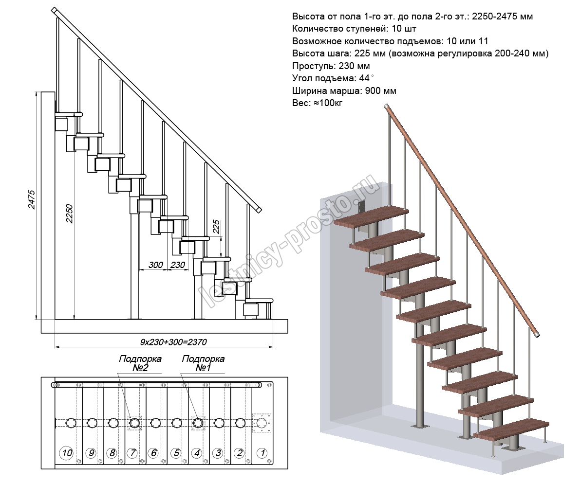 Поставляется в разобранном виде. Лестницу не сложно собрать и установить самостоятельно, при наличии базовых навыков работы с необходимыми инструментами. Если хотите сэкономить время и силы - вы можете заказать монтаж лестницы нашими специалистами.Упаковка: