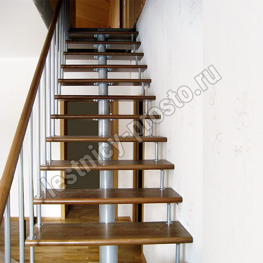 Каркас лестницы представляет собой набор модулей, которые комплектуются уже готовыми к монтажу.