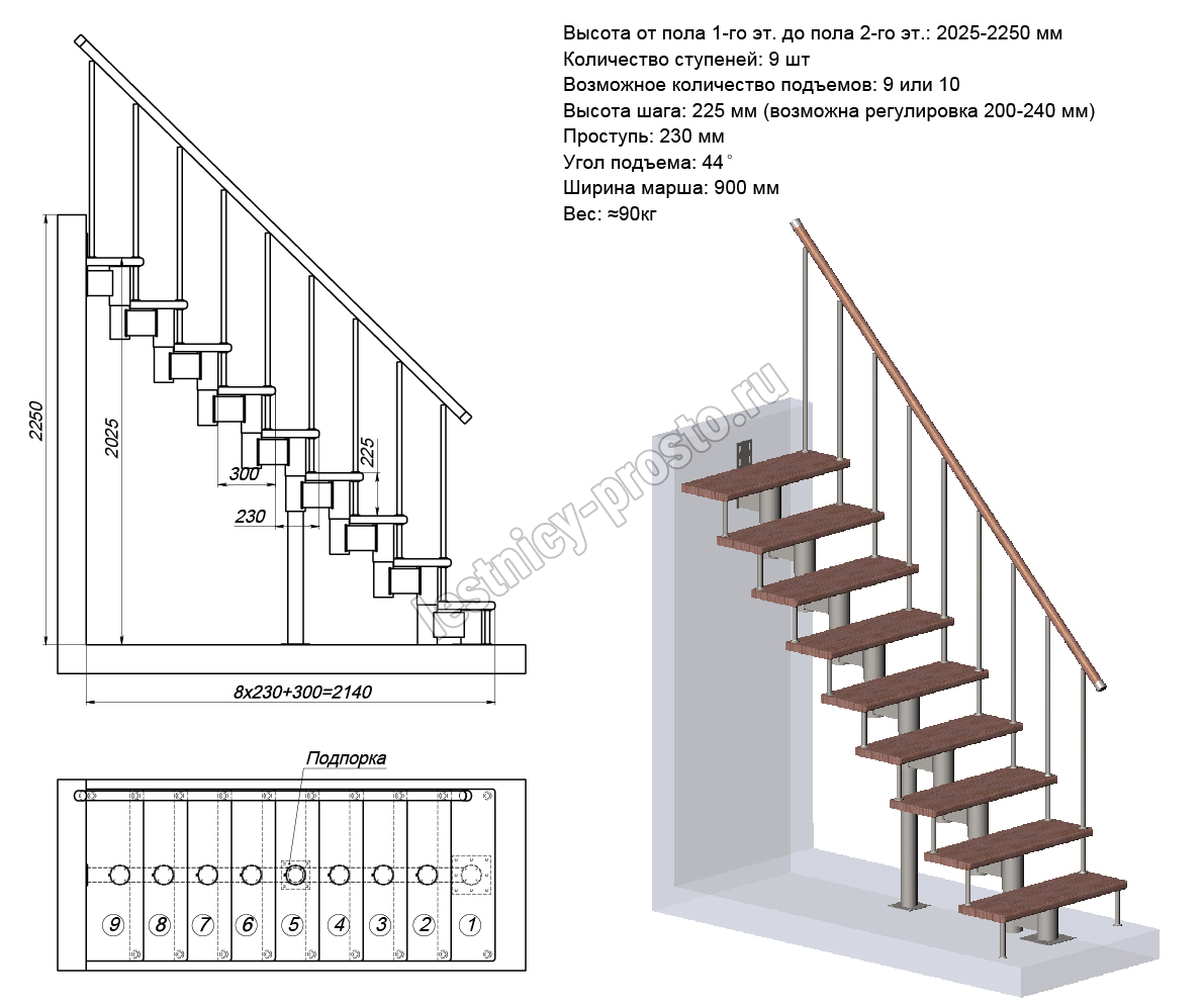 Ширина марша 900 мм