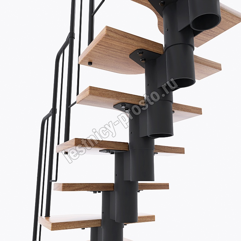 Лестница Prosto Urban Black гусиный шаг 700 мм, h198-288 см (11 ступеней), дуб