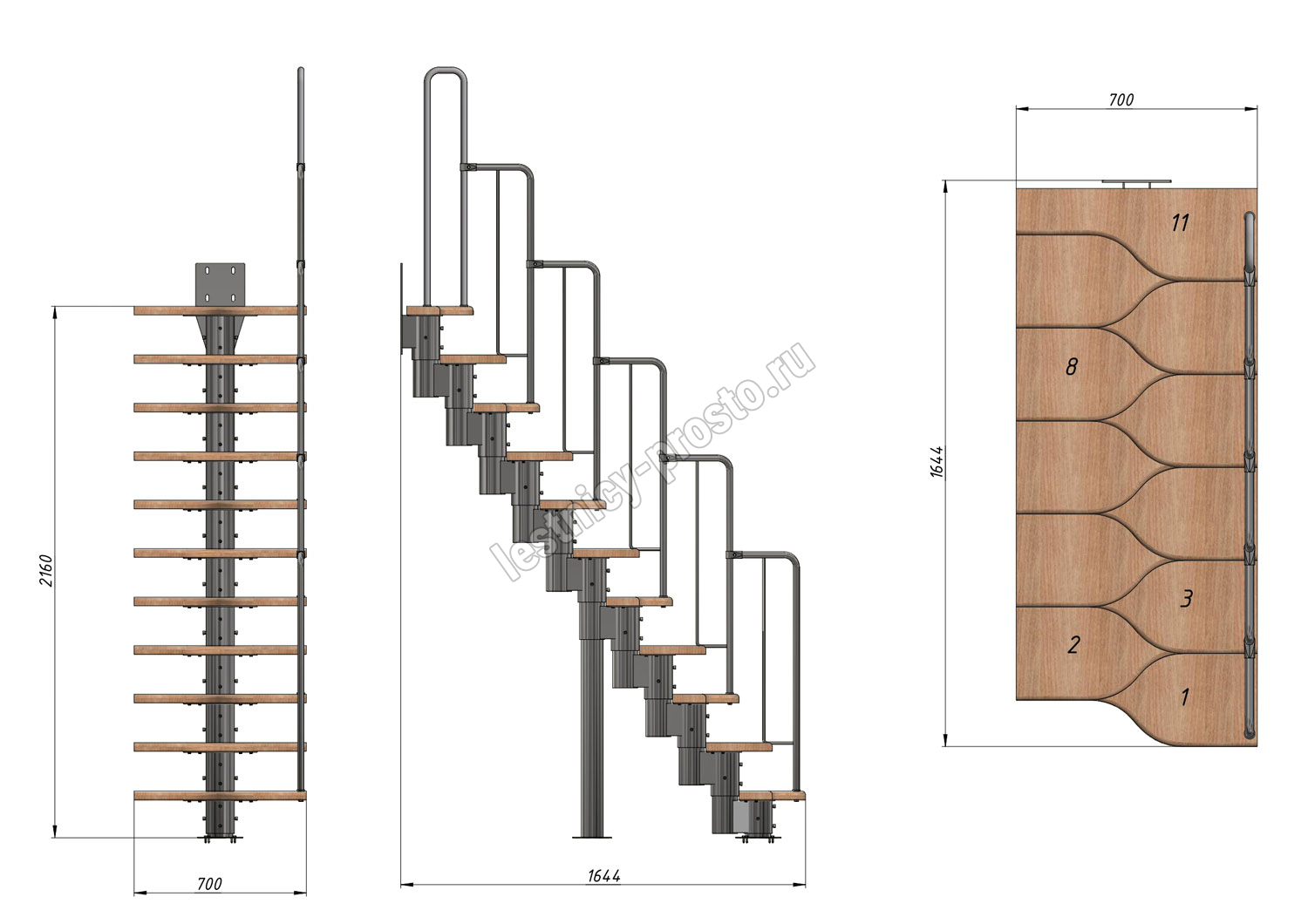 Лестница Prosto Urban Black гусиный шаг 700 мм, h198-288 см (11 ступеней), берёза мультиплекс