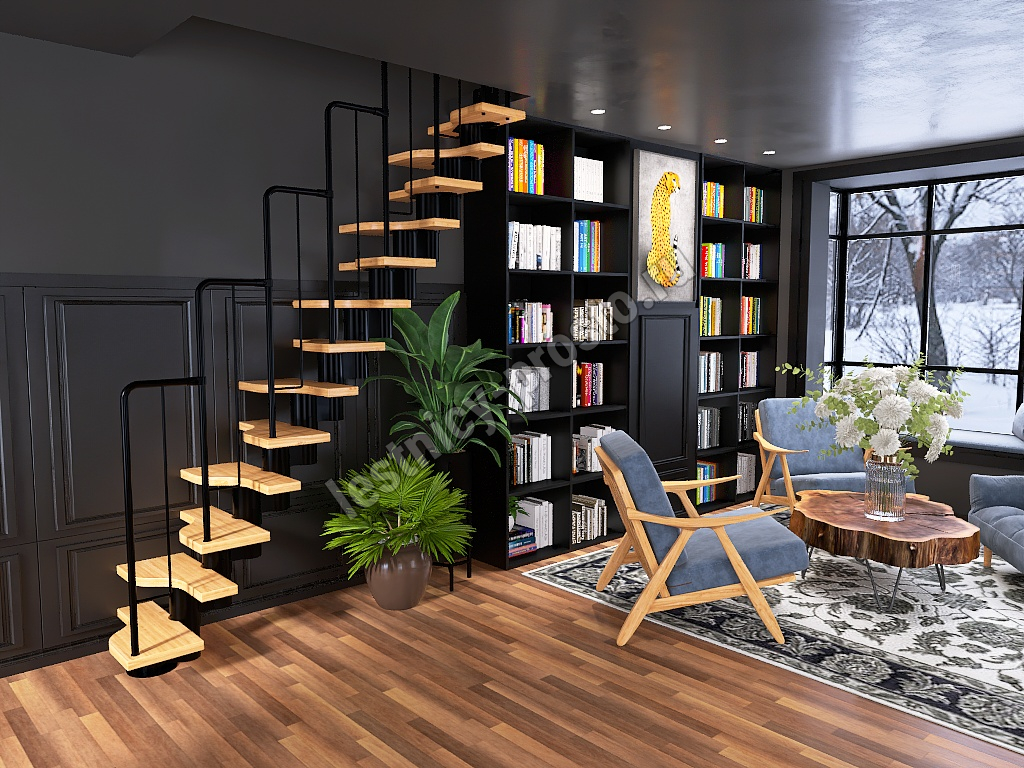 Лестница Prosto Urban Black гусиный шаг 700 мм/Ступени из срощенного ясеня