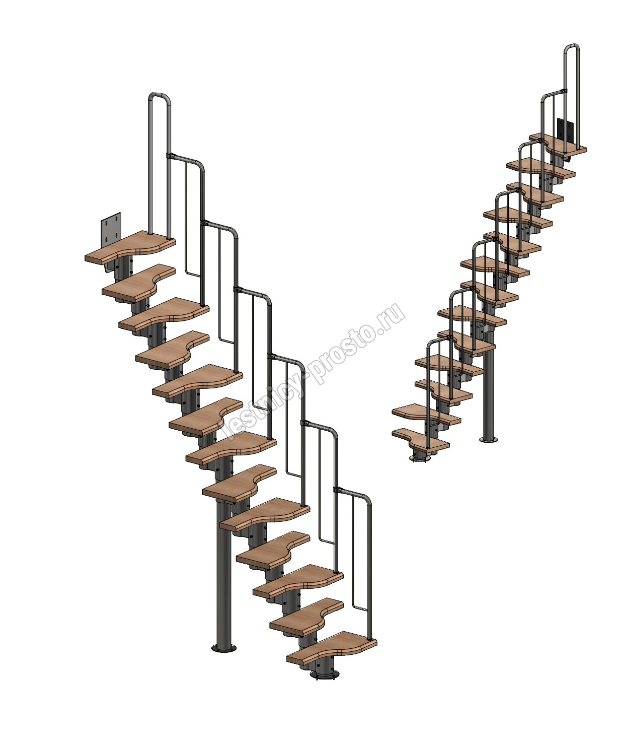 - Регулируемый по высоте в пределах 180-240 мм модуль. Большой диаметр и толщина металла деталей обеспечивают жесткость и прочность конструкции. Регулировка каждого модуля по высоте позволяет легко приспособить лестницу под ваше помещение.