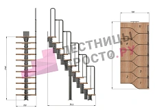 Лестница Prosto Urban White гусиный шаг 700 мм, h198-288 см (11 ступеней), дуб