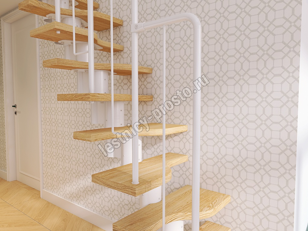 Лестница Prosto Urban White гусиный шаг 700 мм, h216-312 см (12 ступеней), ясень