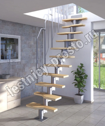 Модульность конструкции позволяет регулировать высоту лестницы при сборке и собрать необходимый поворот до 90 градусов. Ограждение устанавливается на любую сторону.