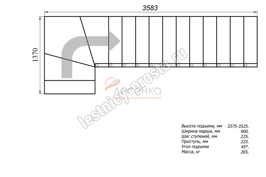 Модульная лестница Фаворит 225 3375-3525, Белый, Бук, Нержавеющая сталь