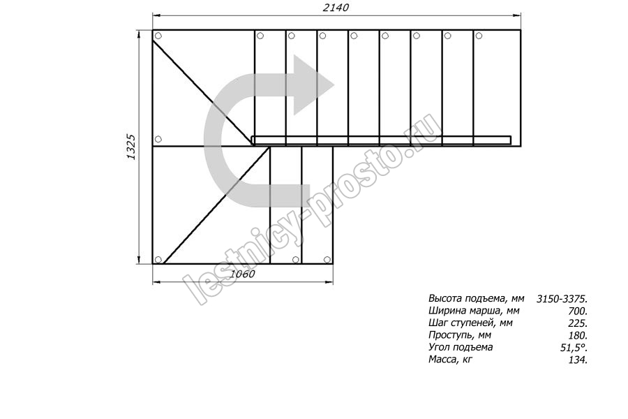 Высота лестницы 2025 - 3375 мм