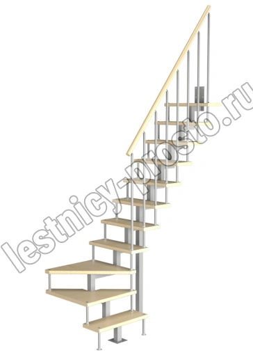 Модульная малогабаритная лестница Компакт 2475-2700, Серый, Бук, Нержавеющая сталь