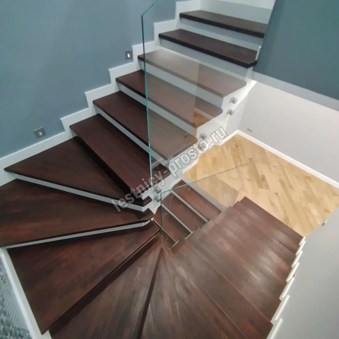 Ступени и поручень выполнены из срощенной лиственницы категории АВ.