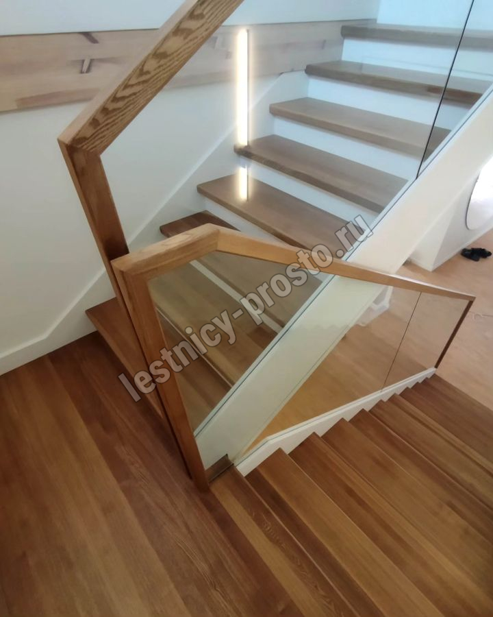 Лестница на второй этаж с ограждением из стекла LP-1-4