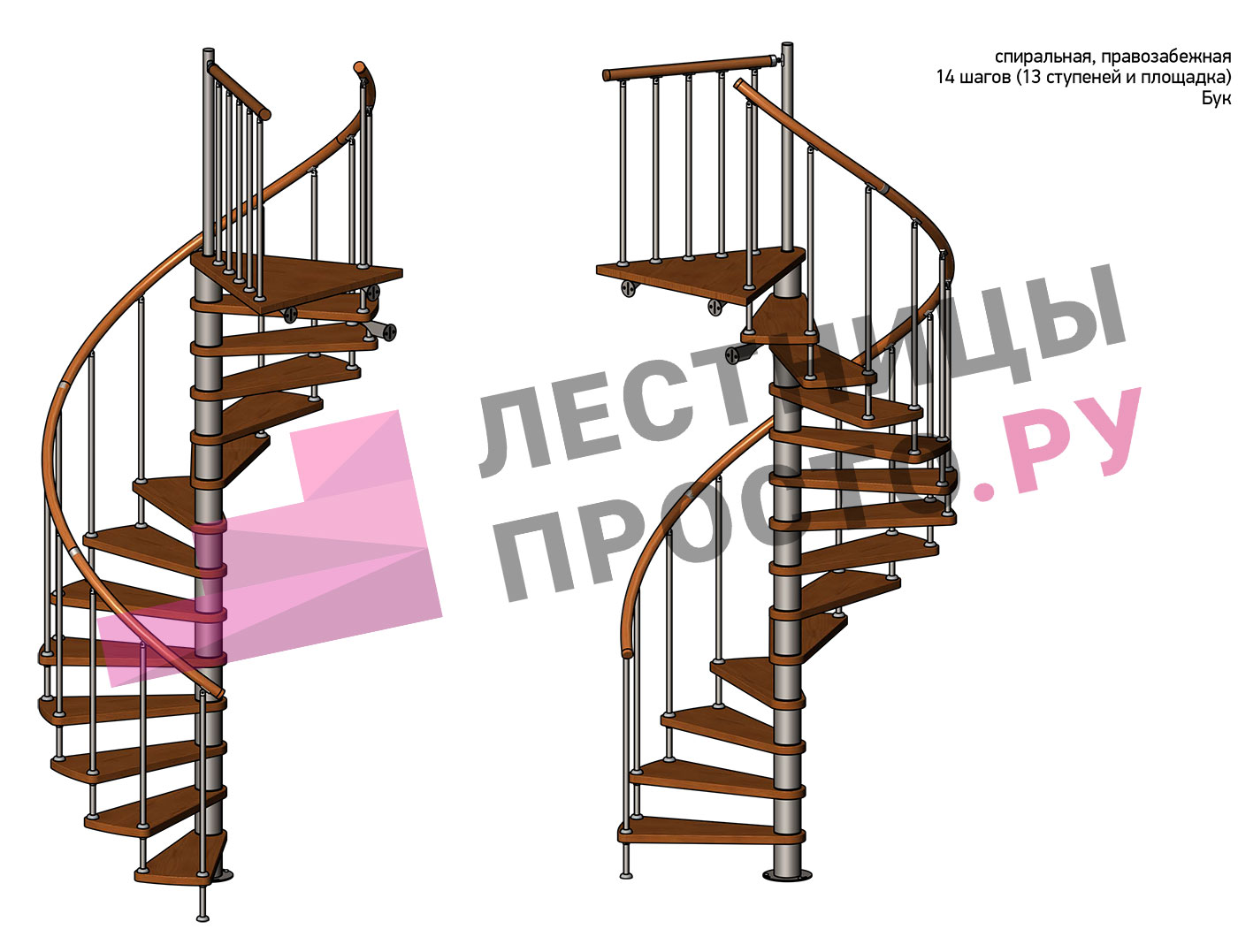 Правая, d=160см, 13 ступеней + площадка