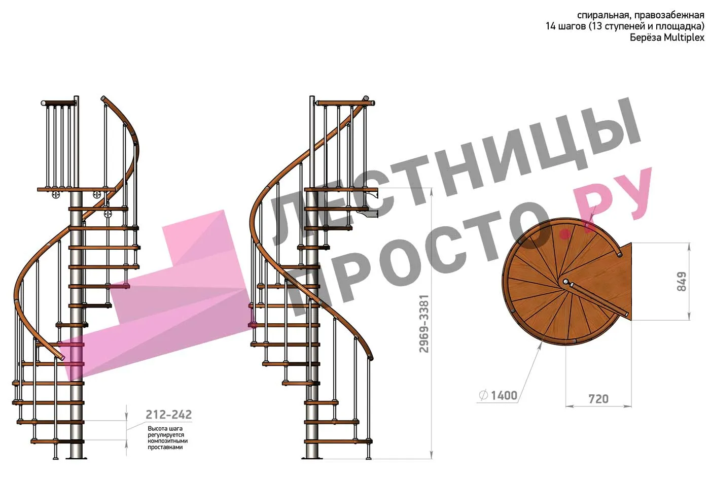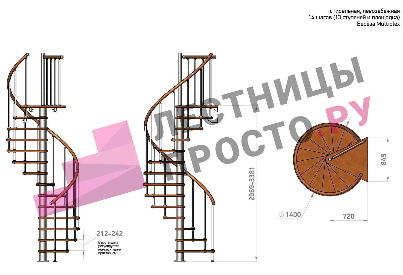 Винтовая лестница Prosto Spiral White D140см, h296.9-338.1 см
