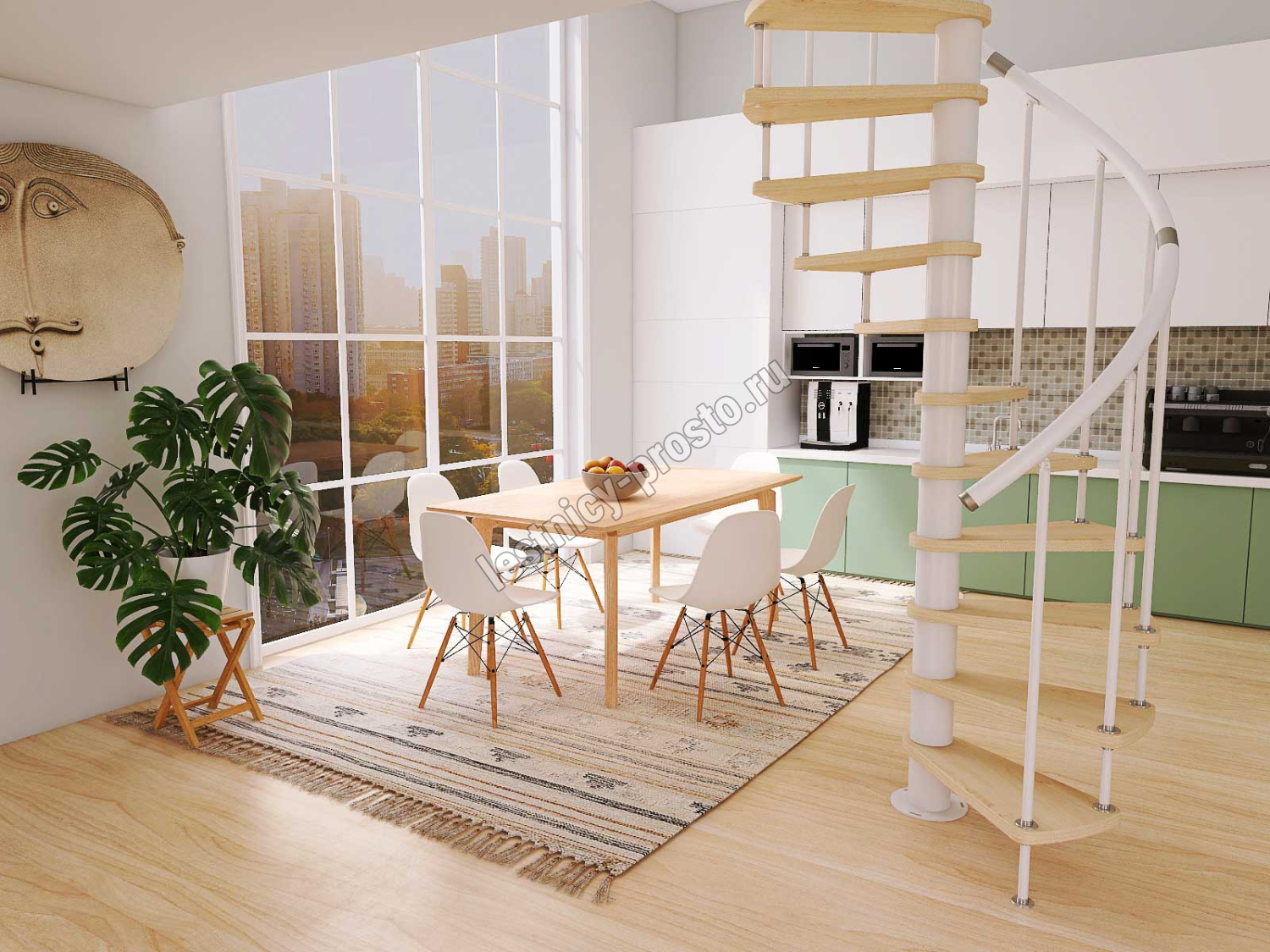 Винтовая лестница Prosto Spiral White D160см, h282.2-326,3 см, бук