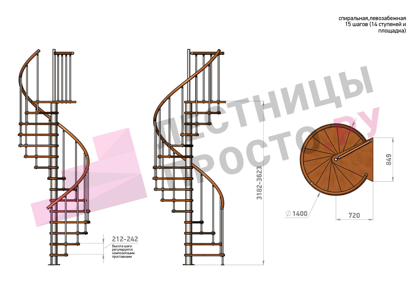 | Винтовая лестница Prosto Spiral White D140см, h296.9-338.1 см |