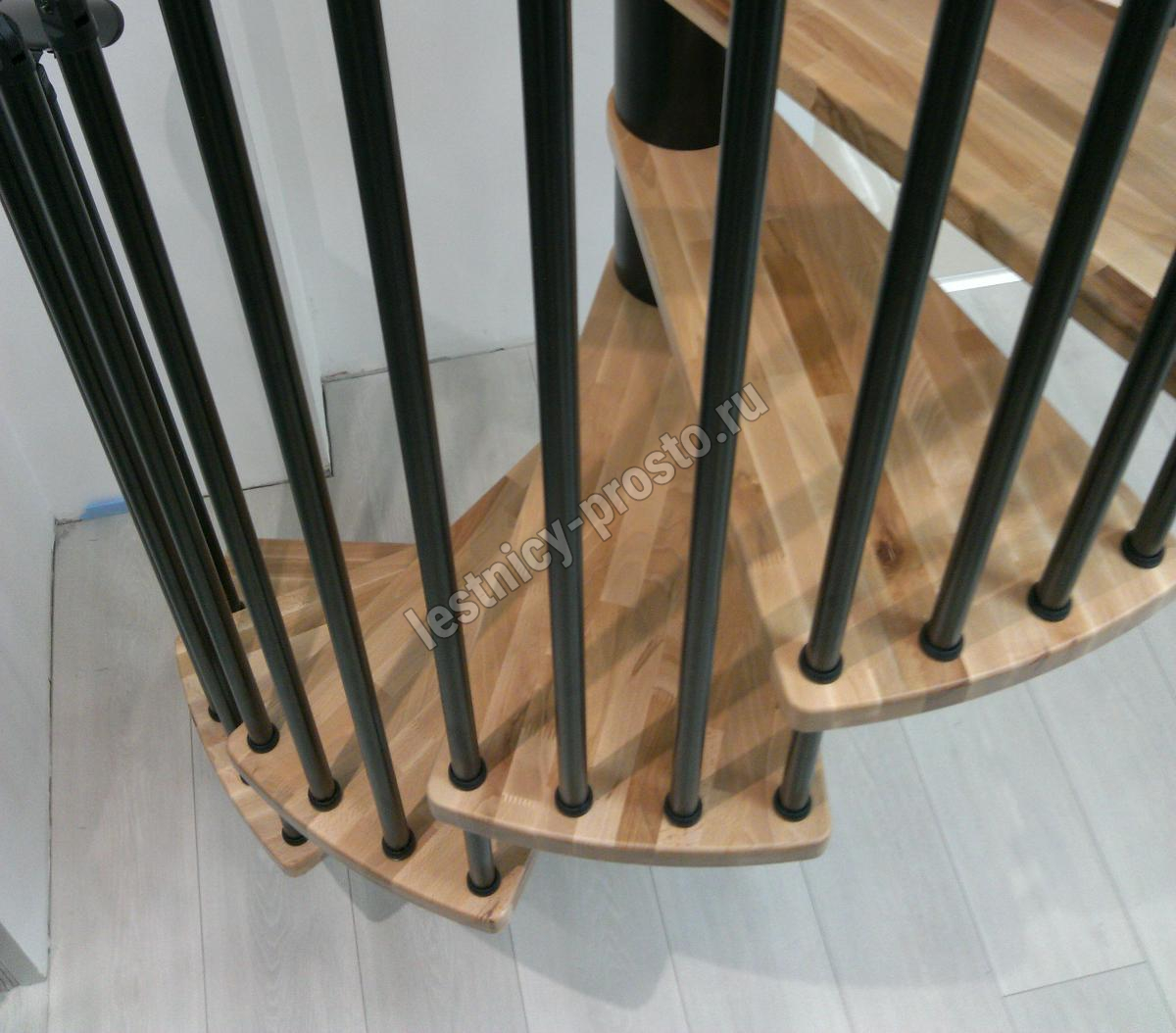 Винтовая лестница SPIRAL WOOD d140 см, чёрная, лакированный дуб