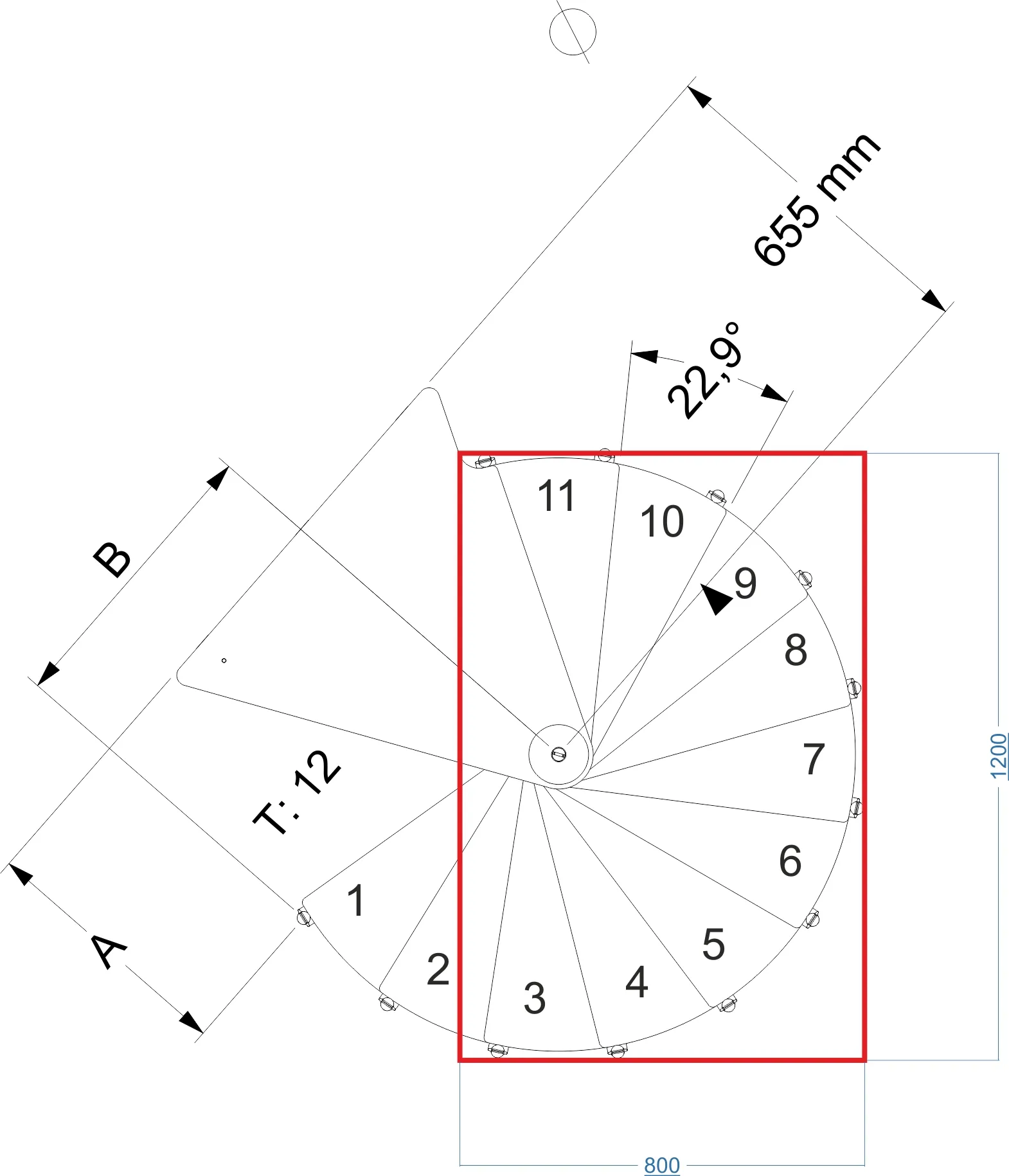 Угол наклона 22 °