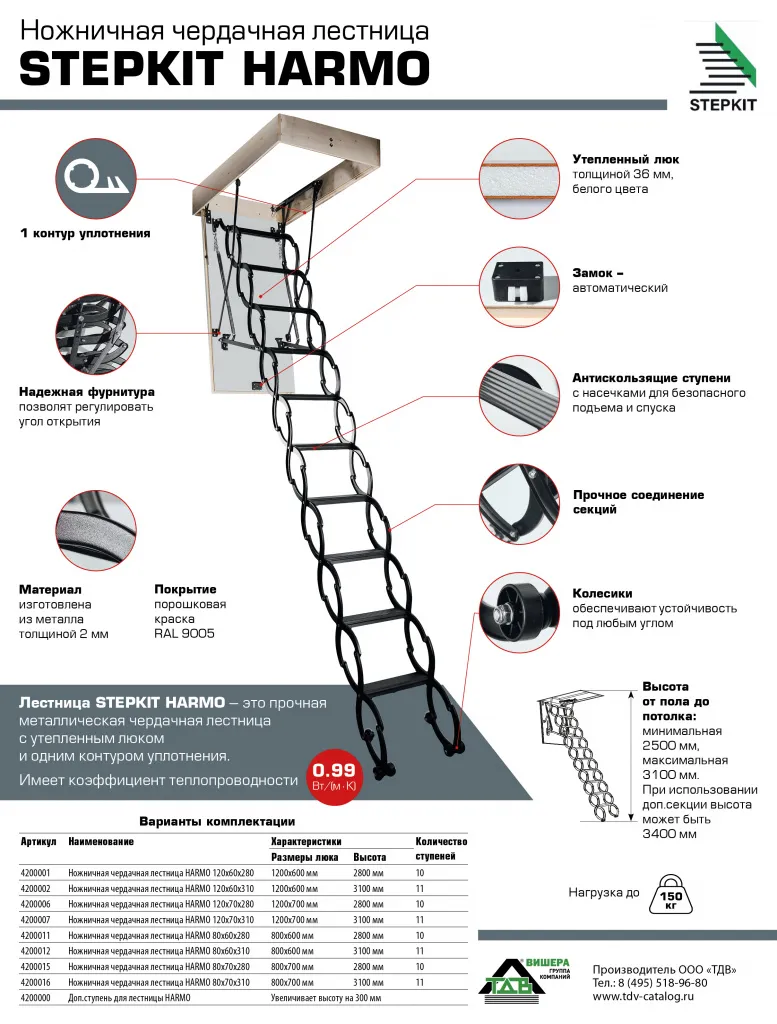 Параметры ступени и высоты шага лестницы Rondo COLOR