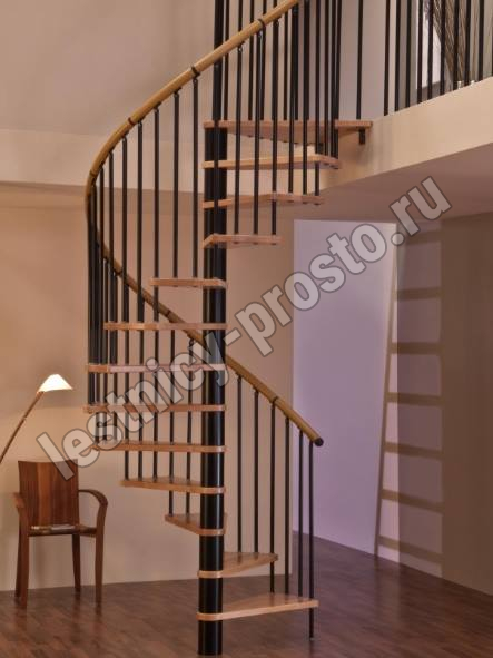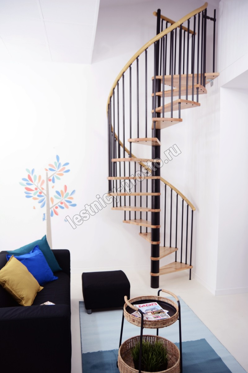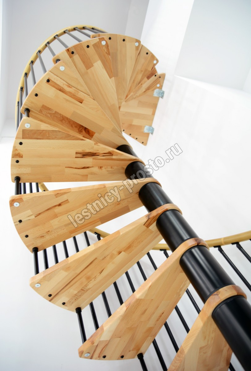 Винтовая лестница SPIRAL WOOD d120 см. чёрная, лакированный дуб