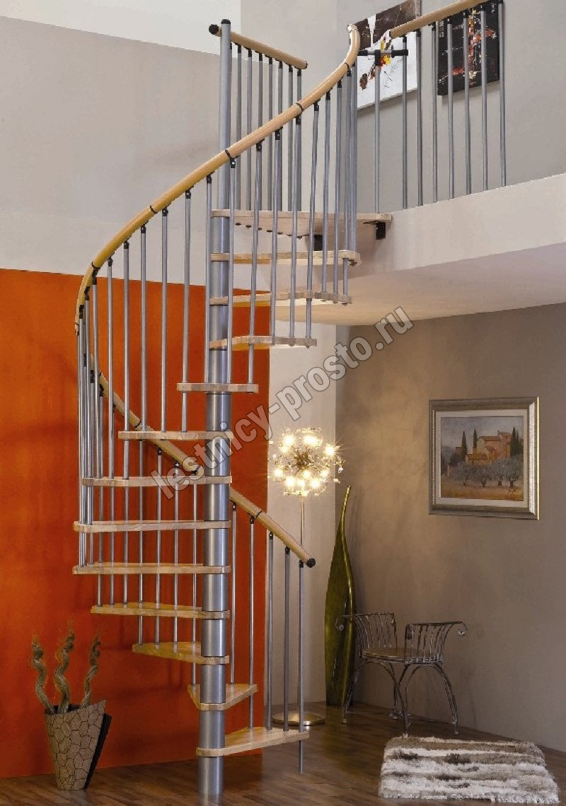 Винтовая лестница SPIRAL WOOD d120 см. серебро, лакированный дуб