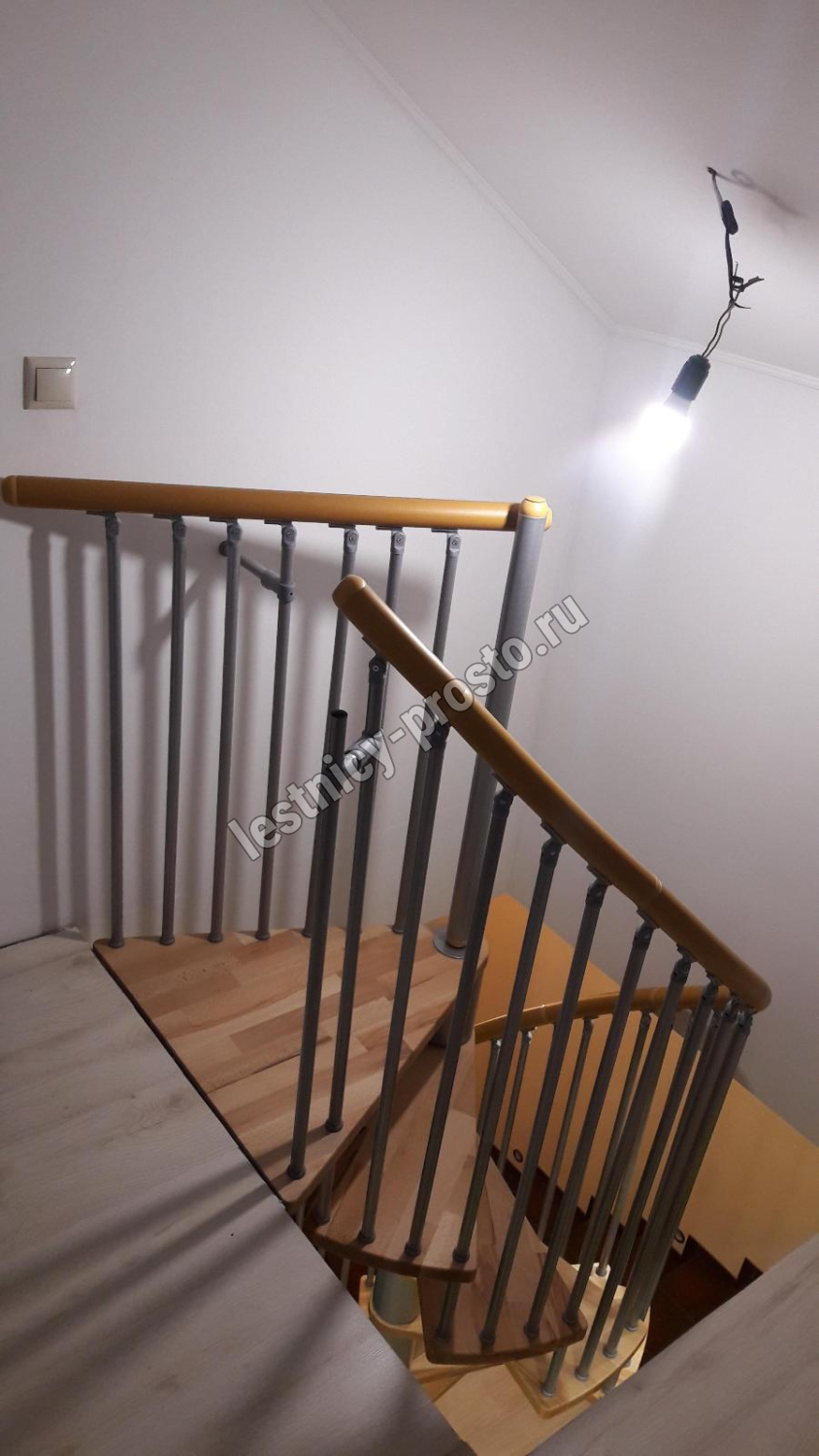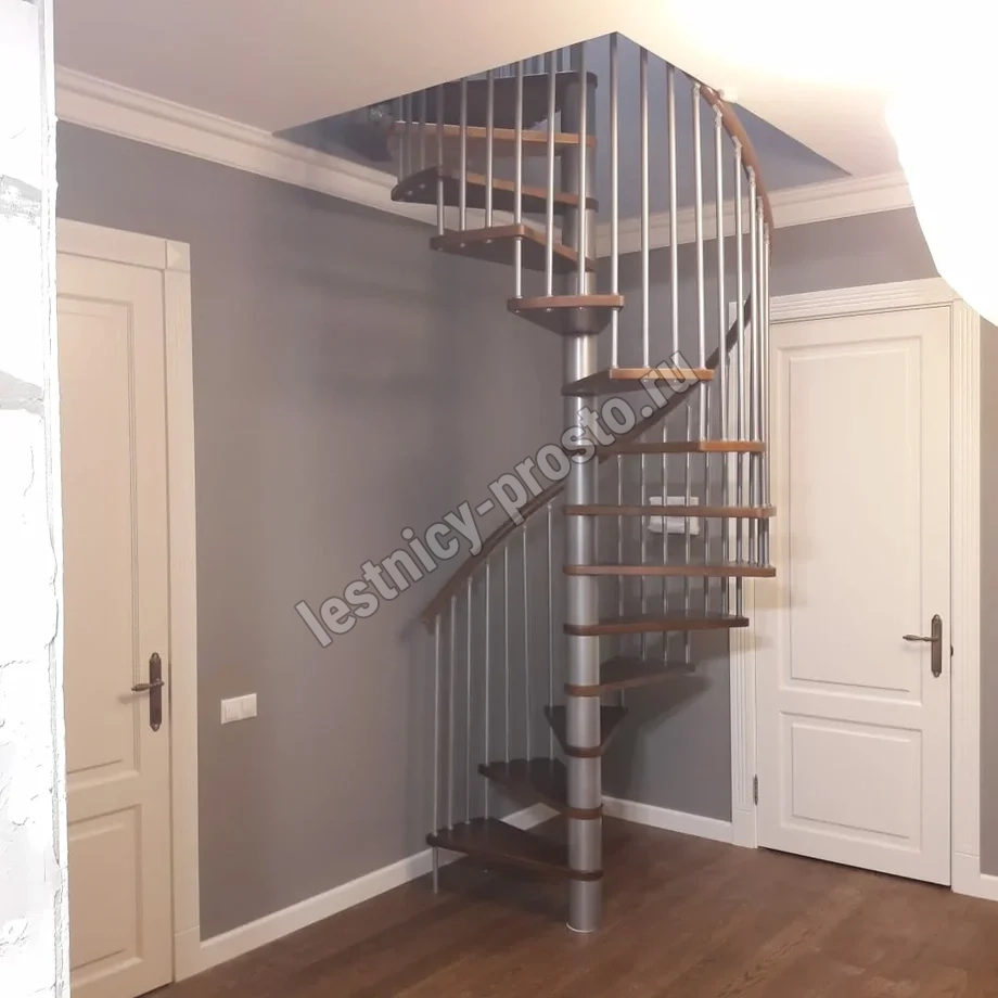 Винтовая лестница SPIRAL WOOD d160 см, серебро, лакированный дуб