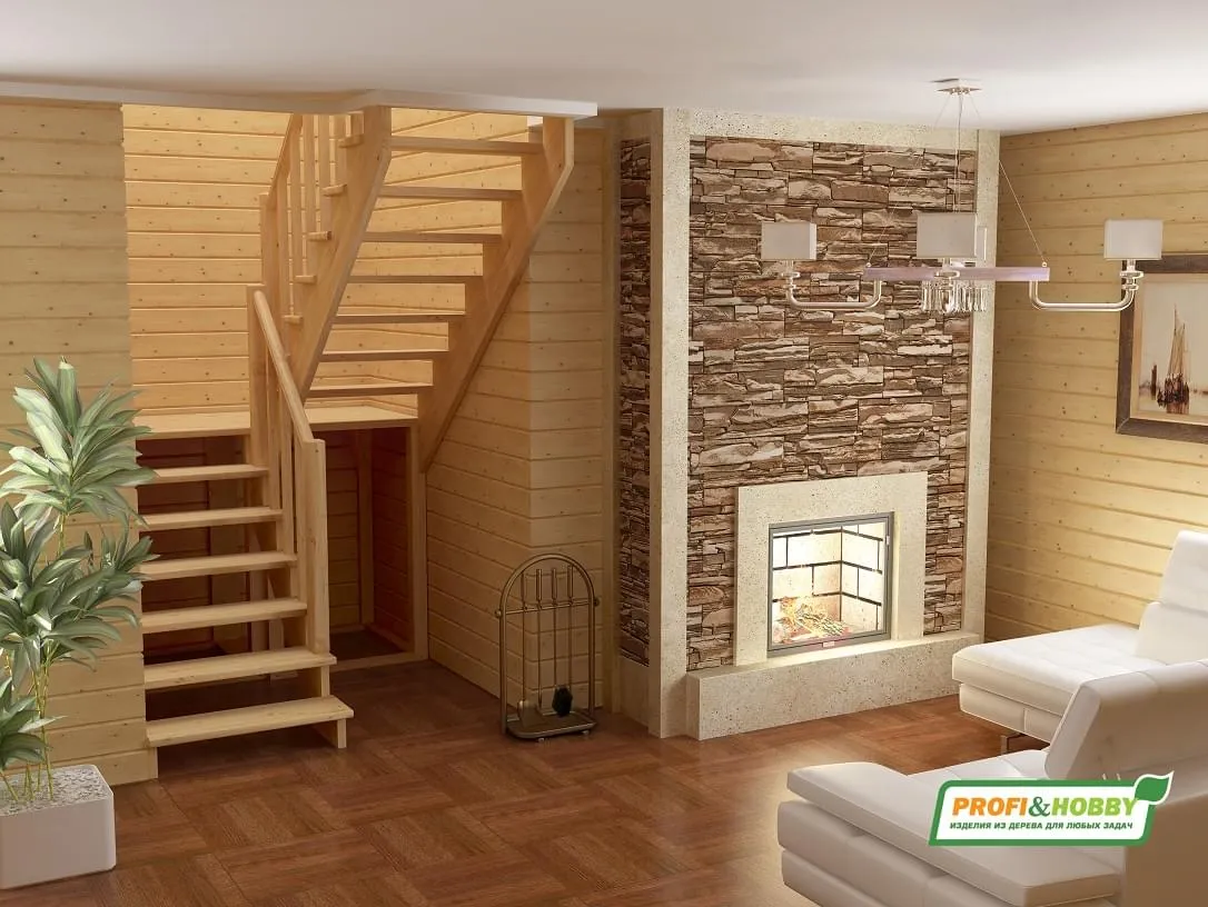Деревянные ступени и поручни  изготовлены из массива дерева и покрыты специальным лаком от компании Минка, который предотвращает царапины, сколы или стирание поверхности при интенсивном использовании лестницы.