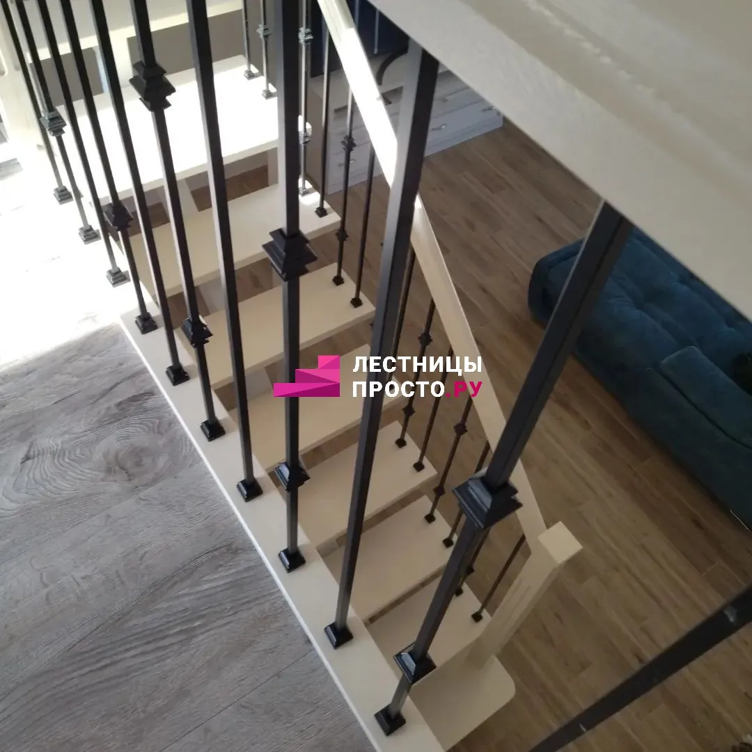 Лестница из сосны с поворотом и подступёнками для частного дома