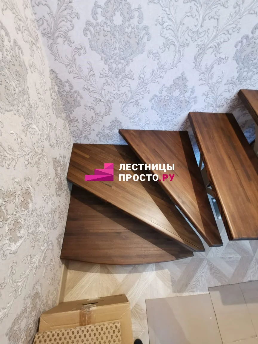 Лестница на центральном каркасе г-обр. металлик, ступени лиственница, LP-151021